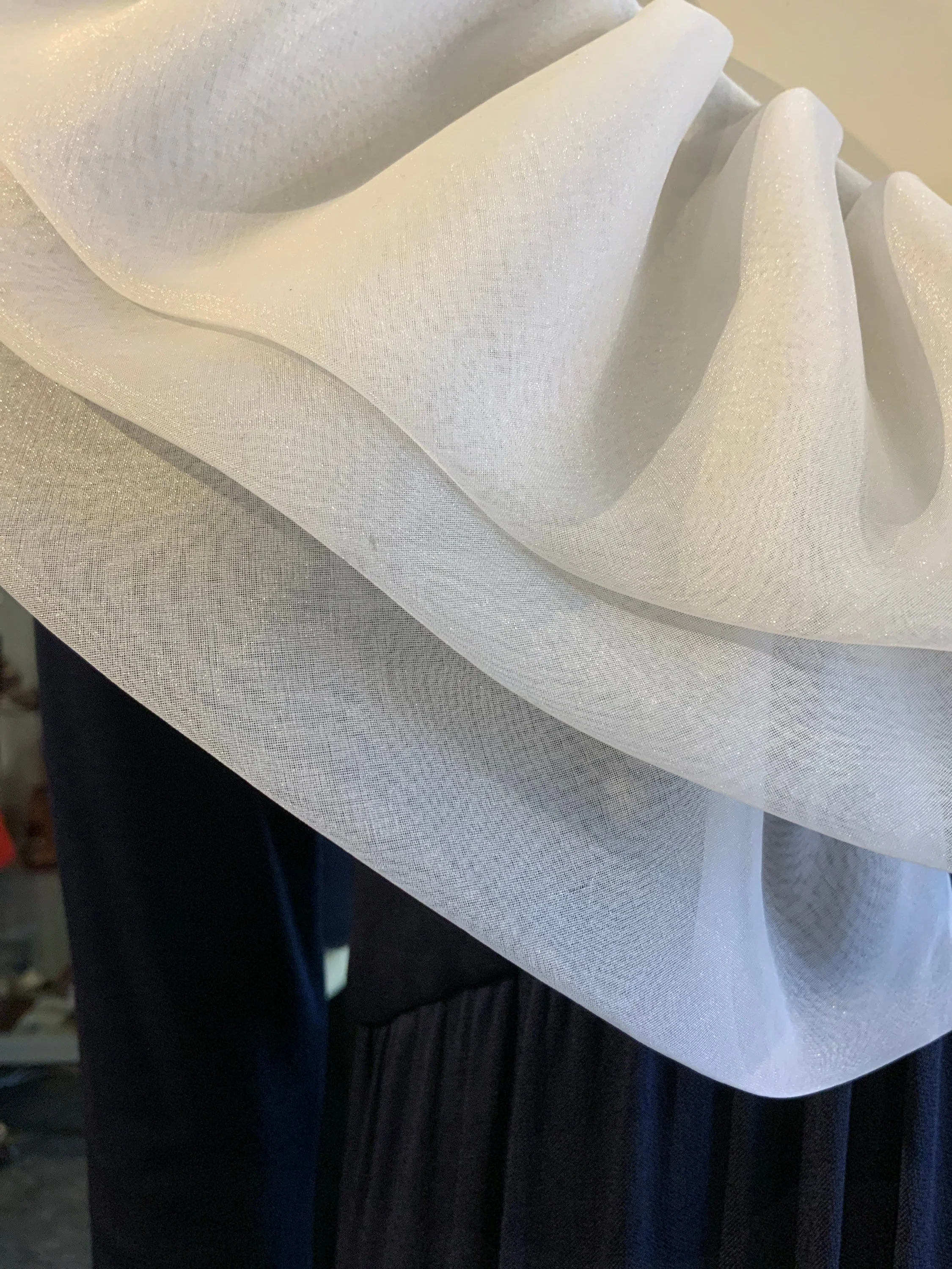 Fabric Content: no fabric label- the exterior is tulle, the lining feels like a soft acetate or rayon