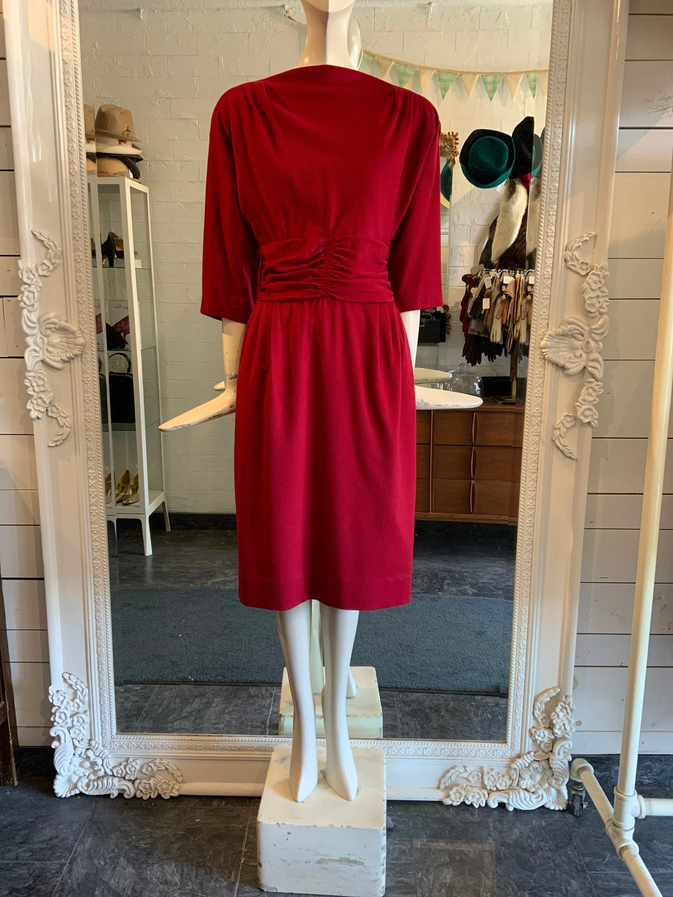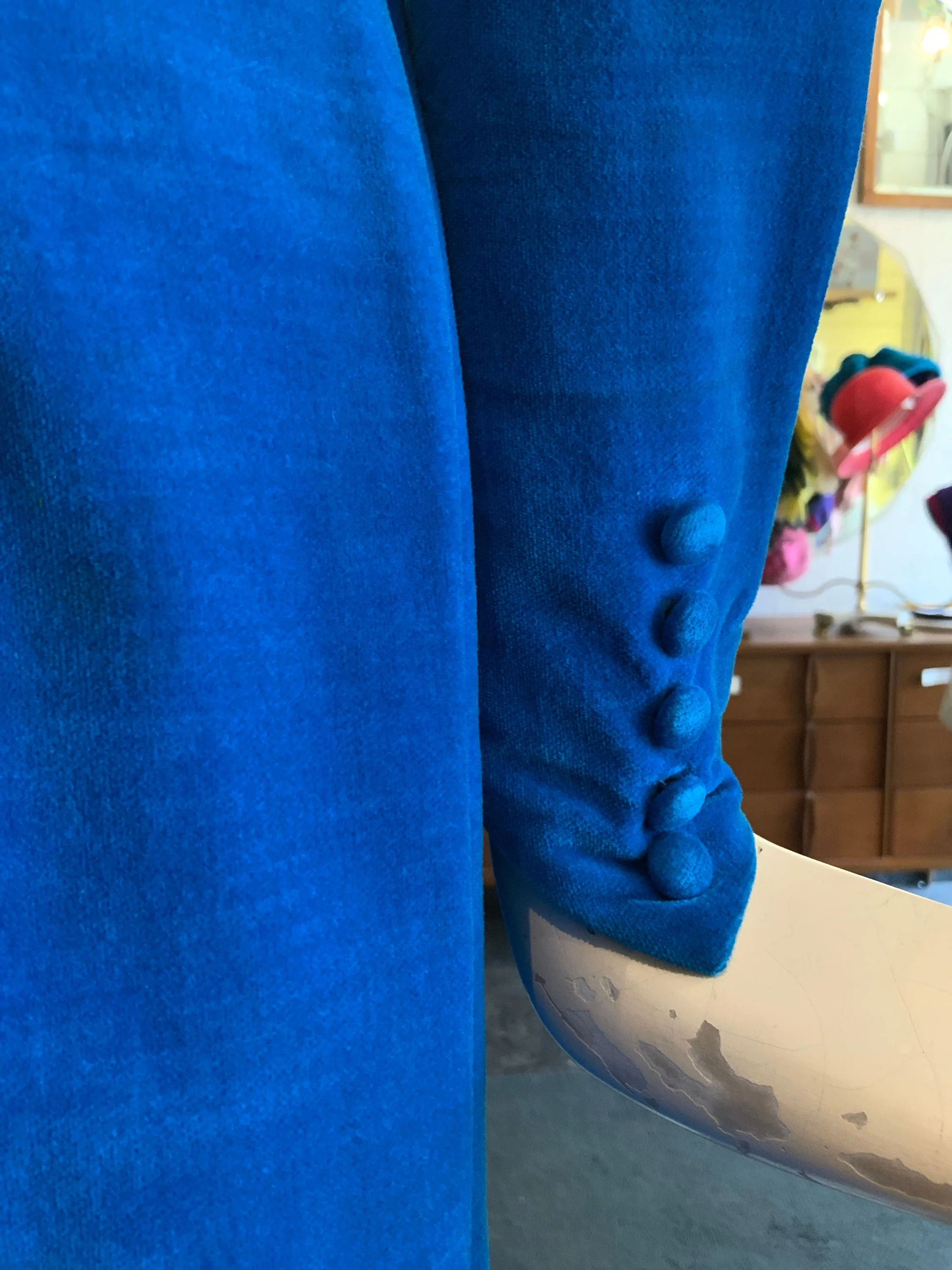 Condition: great vintage condition; there is the faintest wear under the arms that was not photographable; it has one pinhole around the left waist area, which is of no notice.