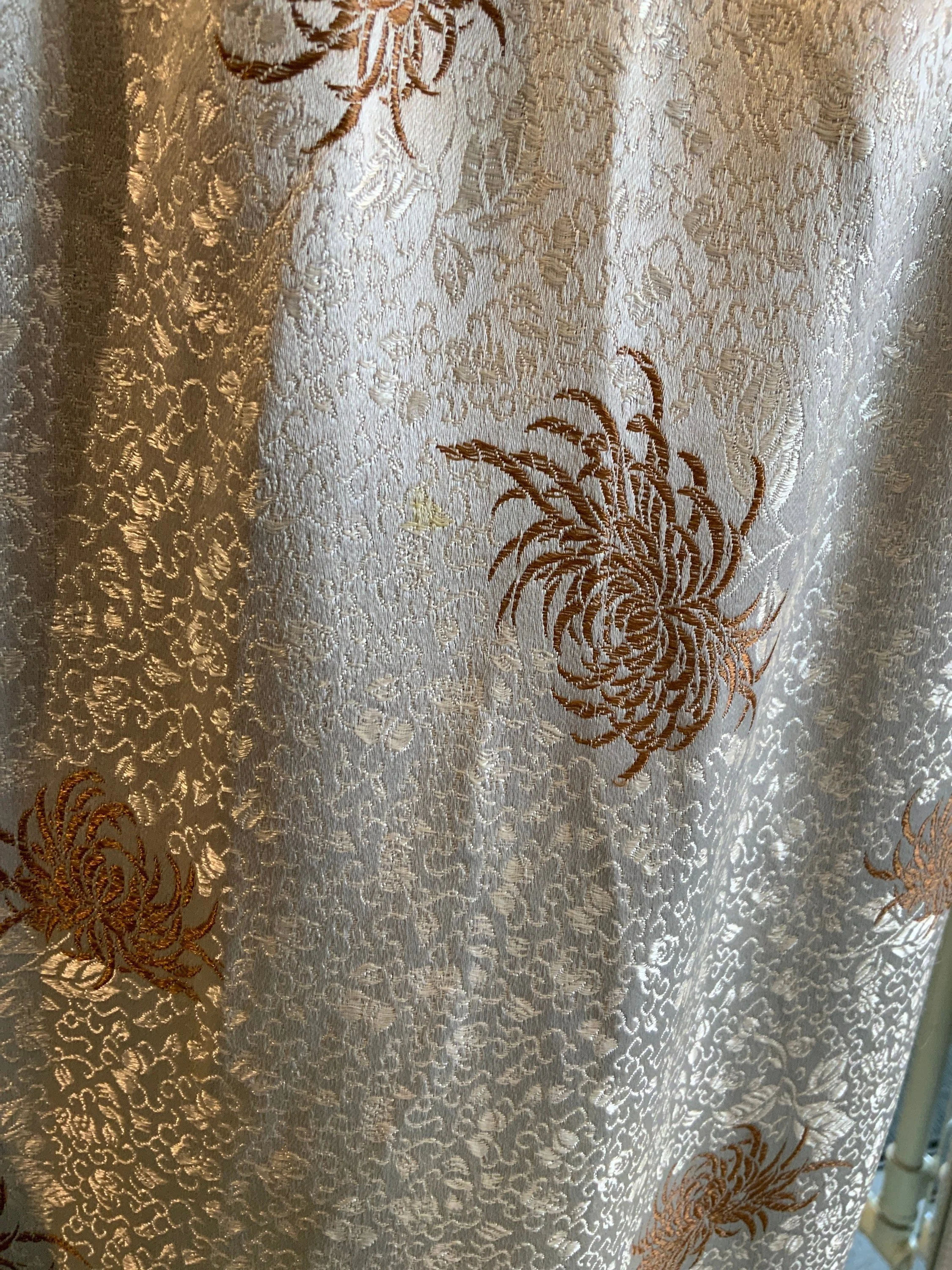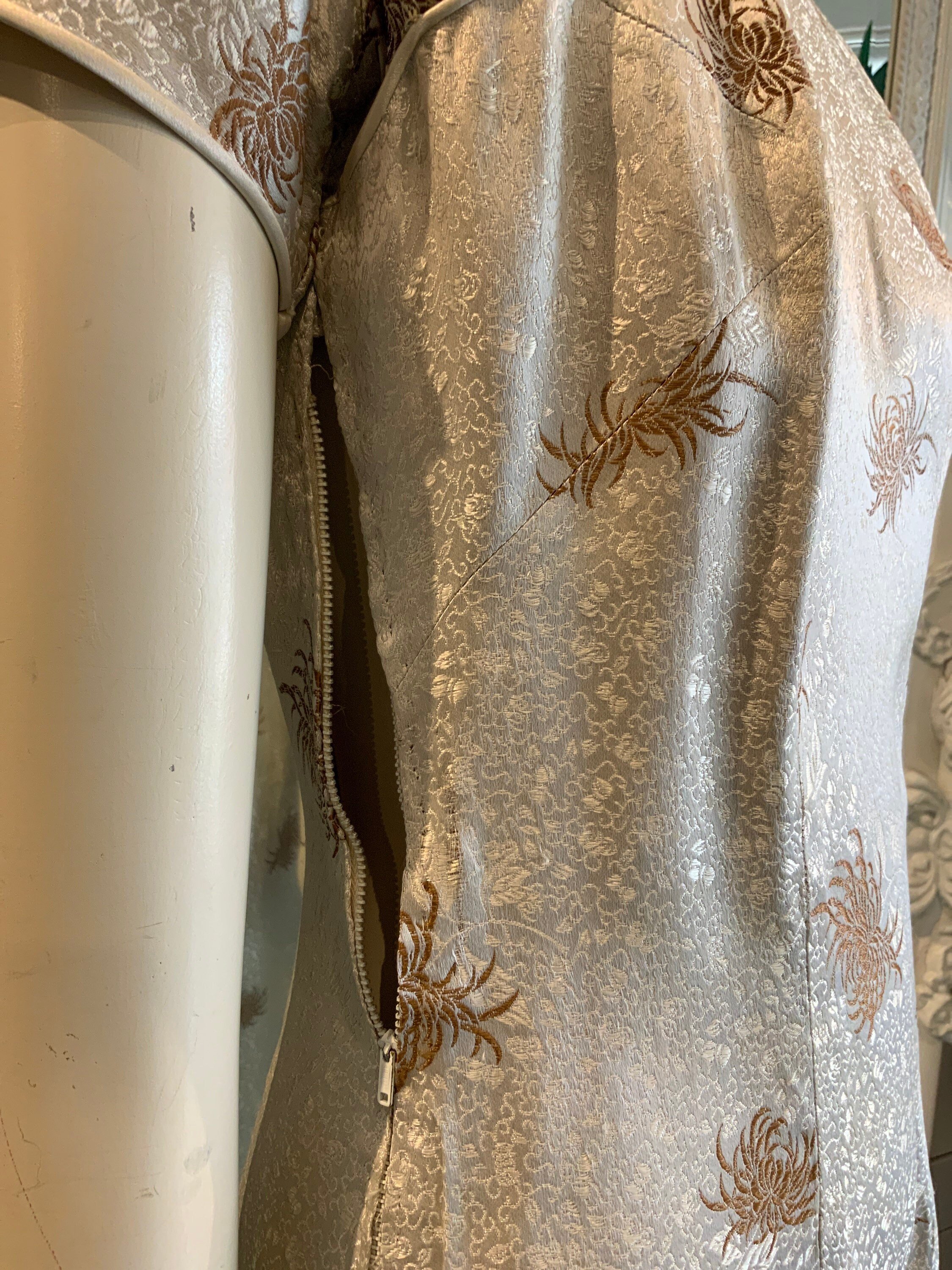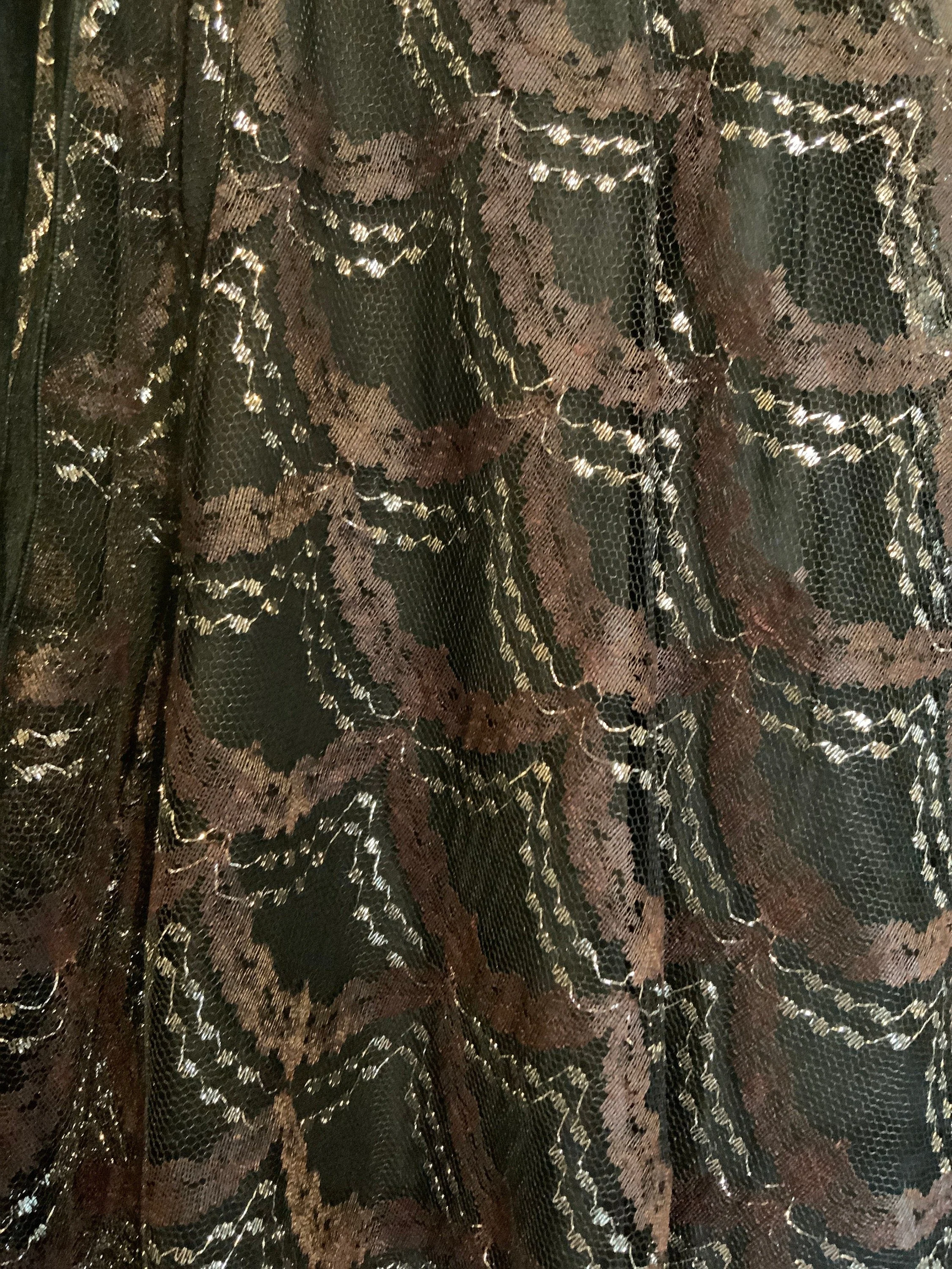 Fabric Content: no tag however the exterior feels like silk and the slip is likely nylon
