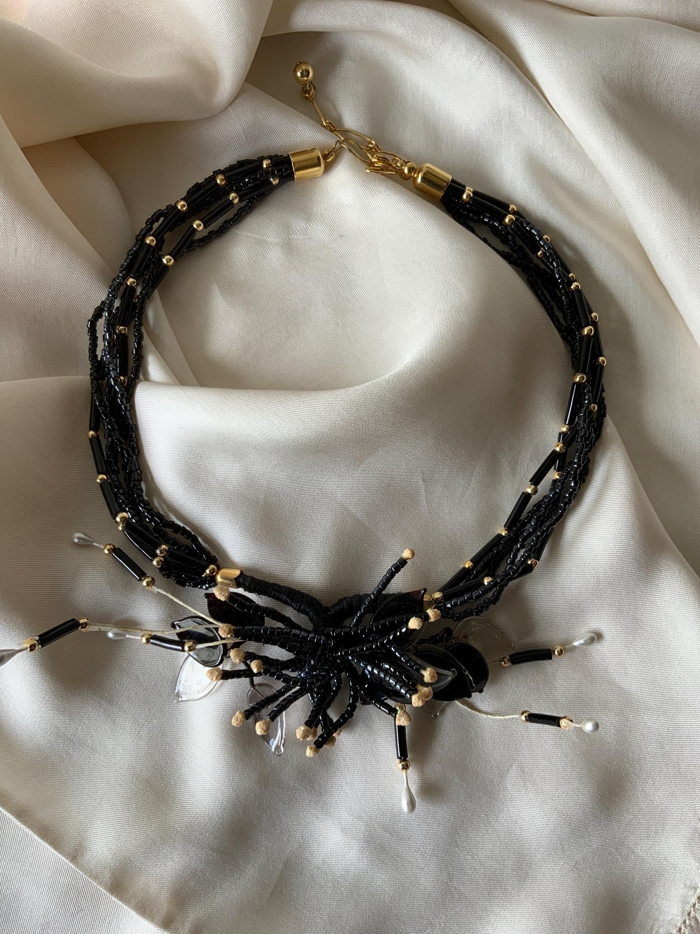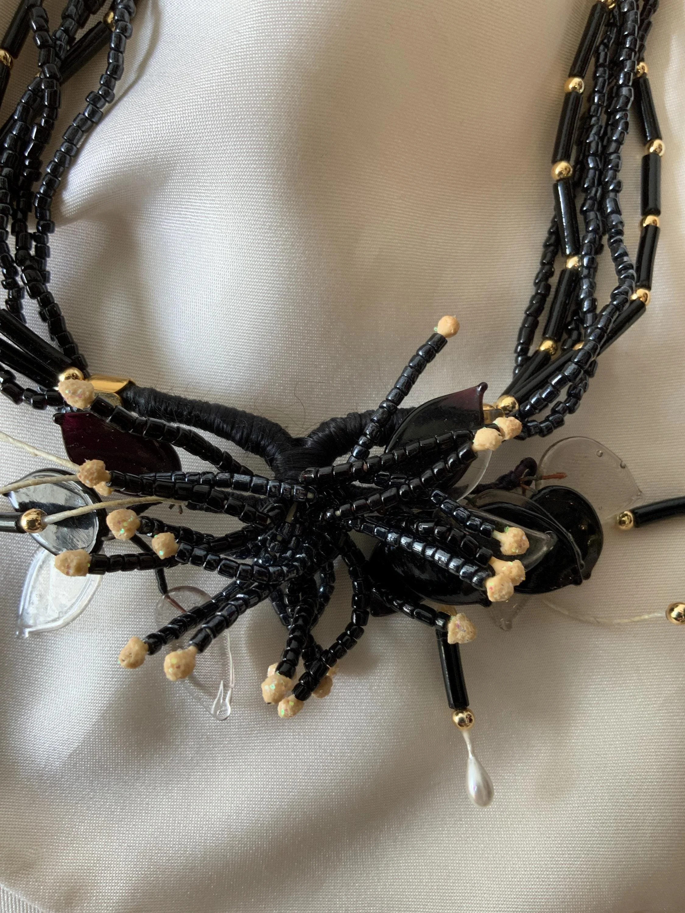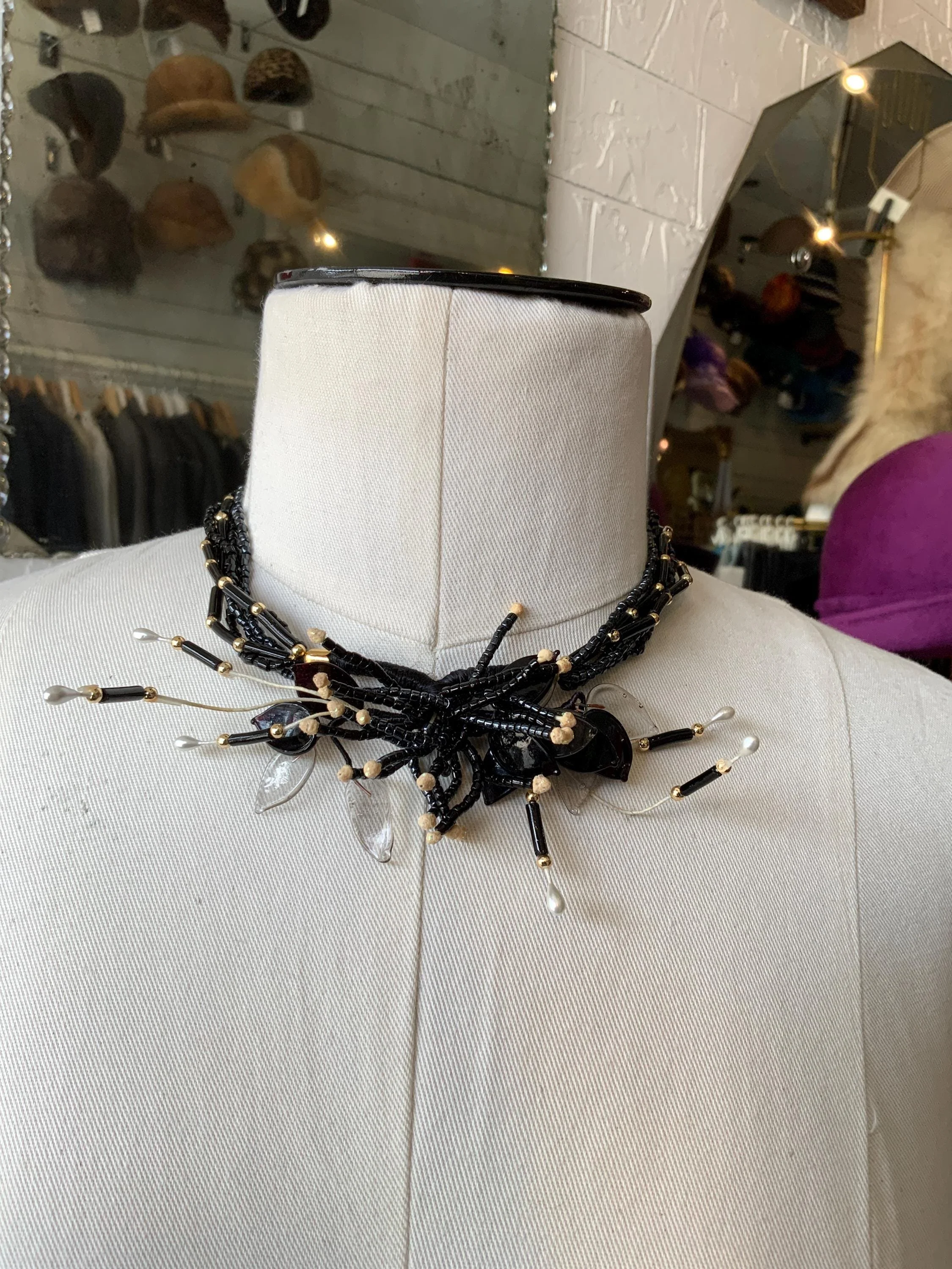 Darling black faceted glass dangle earrings by Sherman. These are so fun and something just a wee different from Sherman. They faceted beads connected by a gunmetal chain is great!They can be worn for most occasions as hey are not too glam, but sparkle just enough!